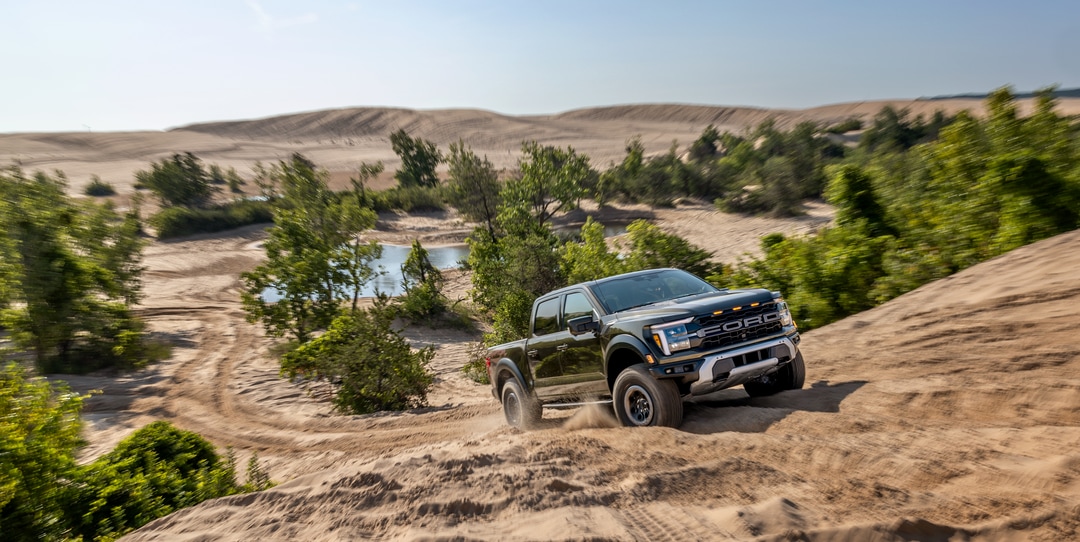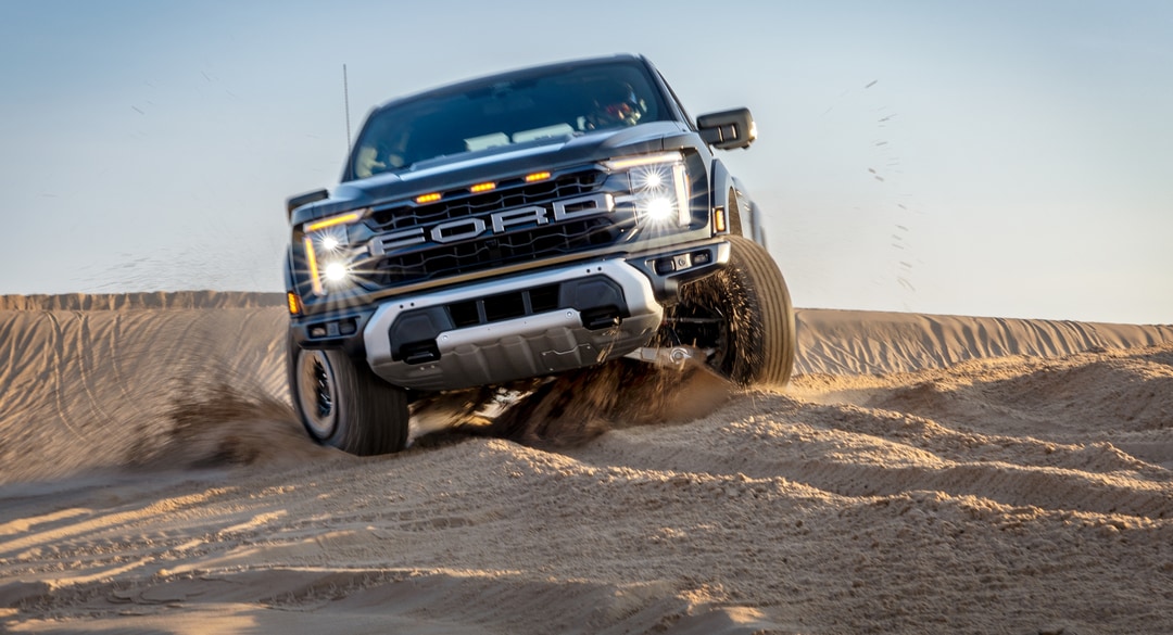 Enter the F-150 to discover a cabin built for work and relaxation. It includes the SYNC 4 infotainment system with a 12-inch touchscreen, wireless phone connection, Apple CarPlay, and Android Auto. Optional amenities feature heated and ventilated seats, premium B&O audio, and large crew cabs that accommodate up to six. Higher trims offer luxury details such as leather seats, power-adjustable pedals with memory, and ambient lighting, enhancing the premium feel.