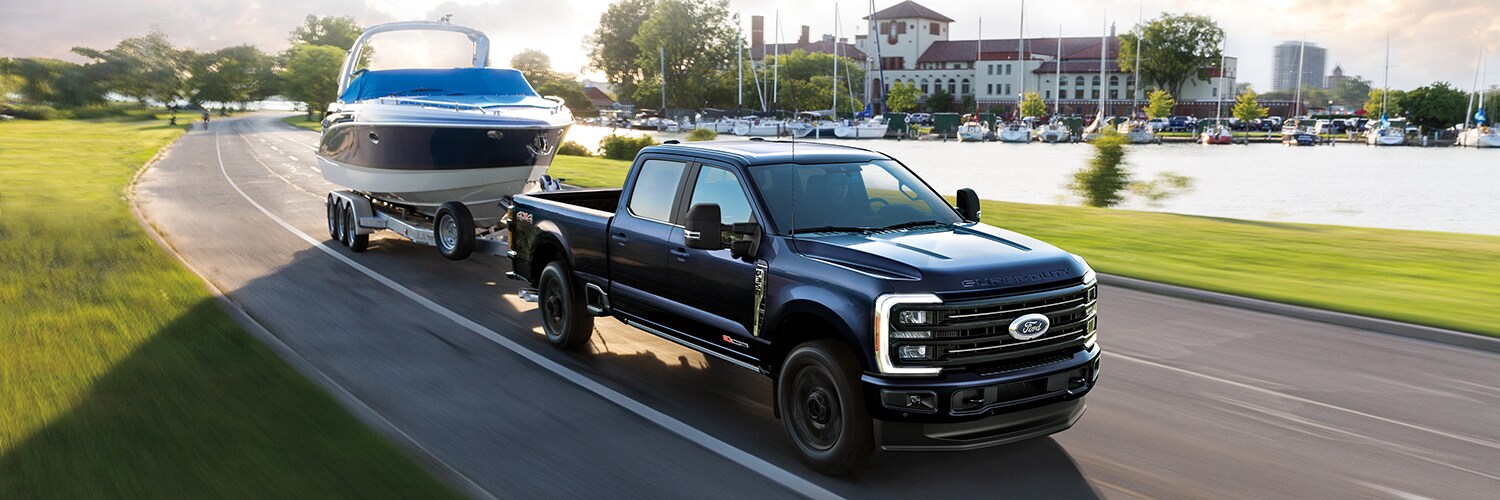 To make towing heavy trailers less stressful, Ford Super Duty trucks offer a range of innovative trailering technologies. Available features like Pro Trailer Backup Assist, Trailer Reverse Guidance, and 360-degree cameras simplify the process of maneuvering with a trailer, even for novice towers. The Blind Spot Information System with Trailer Coverage and available full-color head-up display helps you navigate congested roads in Medina, NY, with greater awareness and confidence. Managing your trailer is also easier thanks to the FordPass app with trailer theft alerts and live trailer camera views on your smartphone.